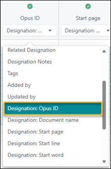Ensure that the Opus ID column is set to Designation: Opus ID from the dropdown list as shown below.