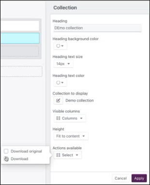 | Collection to display | The collection that you wish to share with portal users. A collection must be created in the platform in order to be presented as an option in the field. |