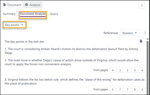 For more information on References and percentage relevance, go to AI Analysis: Document summary.