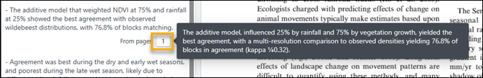 - When Related references are shown, hover over a page link to see a percentage number related to the relevance of the result: