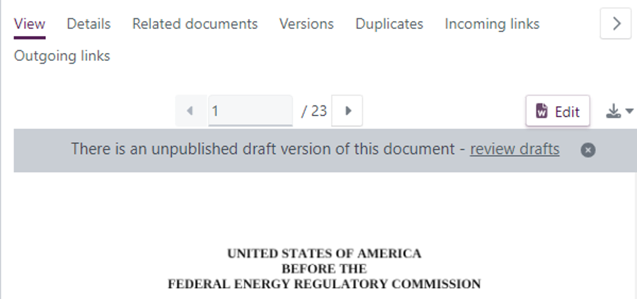 If another user selects the same document, the Preview pane contains a message that there is a new draft version as shown below. This helps to avoid two or more users simultaneously editing the same document, with only the user who saves and closes the document first having their changes retained.