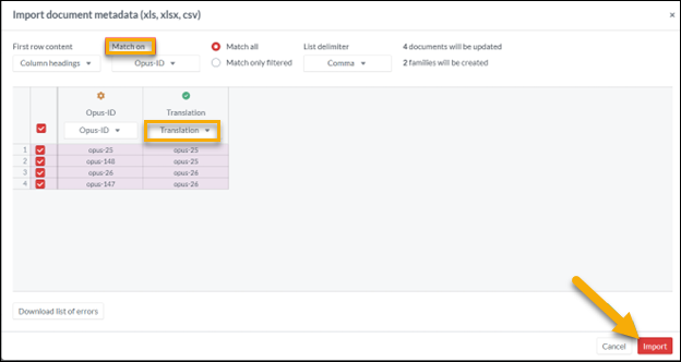 - Select Match on and then select Opus ID from the dropdown list underneath.