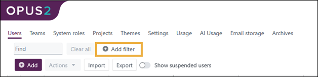 If you are an Opus 2 System Administrator, you can now use multiple filters for specific columns to quickly and accurately locate users, projects, templates etc.