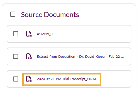 Your chosen source documents show in a list on the right.