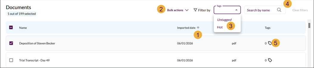3. Select the documents you want to work with by filtering on one or more tags.