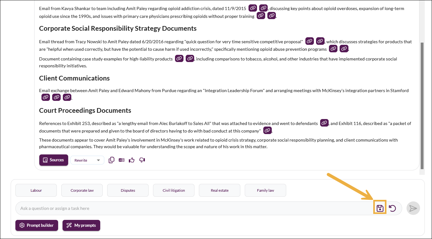 When using any of the Assist tools, you may want to save your prompts for re-use on other cases.