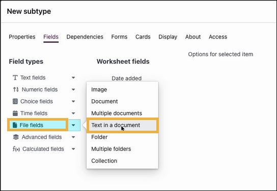 - Select file field - text in a document and name it Highlighted Text.