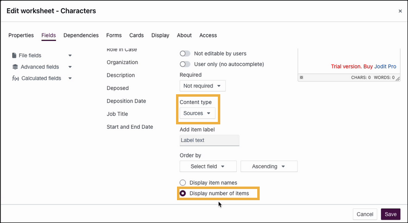 - Select Save to save the new Sources subtype for Characters.